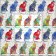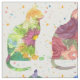 A colorful cat fabric with cat silhouettes in profile painted with watercolor flower patterns in a variety of colors with a watercolor spatter and spots background.