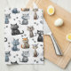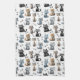 Cats With Scowling Faces and Paw Prints Pattern Kitchen Towel