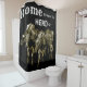 Cattle Herd Ranch house shower curtain. Beautiful colorized graphic herd of cattle strike a pose on this high contrast black shower curtain that bears the sentiment "Home is where the Herd is." Bold and beautiful this will be a blue ribbon winner in your ranch or farmhouse.