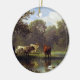 This is a quiet country landscape painted by Friedrich Johann Voltz in 1885. It is a cropped version of Vieh an der Tränke. A few ducks dabble in the pond while cattle wade around the edges. The bright blue skies about the trees suggest a warm and pleasant day. Wikipedia made this possible, please support them.