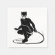 This striking graphic captures Catwoman in her element, showcasing her agility and stealth as she prepares for action. The illustration is rendered in bold black and white, emphasizing the sleekness of her costume and the dynamic movement of her pose. Catwoman is depicted crouching with a whip coiled at her side, her gaze focused and calculating. The splattered ink effect around her adds a sense of urgency and the chaotic environment in which she thrives. This artwork not only highlights Catwoman's iconic status as a skilled thief and anti-heroine but also her complex relationship with Gotham and its dark knight. It's a powerful portrayal of one of Batman's most enigmatic and formidable allies and adversaries.