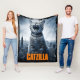 Warm and cozy custom fleece blanket featuring "Catzilla" funny cat meme movie poster for any decor. Measures 50" x 60" inches.