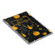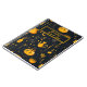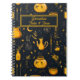 A witch themed Cauldron and potions Notebook. Design features potions and cauldrons in orange on a black background with a black text box and orange borders. A fun design for Halloween themed ideas.