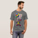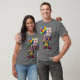 My 11 yo wore adult XL (5’7” 165#). The 8yo is small framed. She wore adult small and tied it in the back. Grandma wore adult large with long sleeve shirt underneath. Tall girl adult medium. Dark haired male adult large. Good quality dark Heather gray, Gildan brand shirt. -it was next up from basic choice and cost about $20 per shirt. Not too thick or thin. Washed and dried well, no major shrinkage. Not see-through. Can wear a bra under it fine. Screen print is just as shown and well done, front and back.