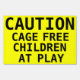 Caution Cage Free Children Playing: Warning Sign with Humor