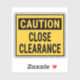 Caution Close Clearance Sticker