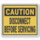 Caution Disconnect Before Servicing Sticker