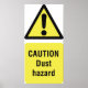 Make safety visible with this bold caution dust hazard poster featuring a high contrast yellow warning design and clear hazard symbol. Ideal for workshops, construction sites, factories, garages or any environment where airborne particles are a risk. This eye catching safety poster adds both function and industrial style, helping reinforce workplace awareness while fitting seamlessly into modern or utilitarian spaces.
