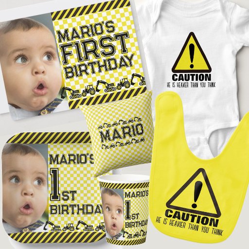 Amaze your guests with this Funny 1st birthday party invitation featuring a caution mark with modern typography.