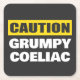 Funny CAUTION GRUMPY COELIAC coaster. If you know any Coeliacs / Celiacs, you'll know how grumpy they can get if they can't find gluten-free food. Change the white text on this coaster to whatever words you wish.