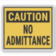 Caution No Admittance Sticker