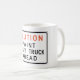 A sign that says caution paint spray truck ahead. This design looks really effective on these Mug