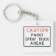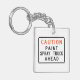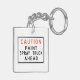 A sign that says caution paint spray truck ahead. This design looks really effective on these Keychain