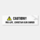 CAUTION, PRO-LIFE , CHRISTIAN GUN OWNER, CAUTION!! BUMPER STICKER