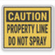 Caution Property Line Do Not Spray Sticker