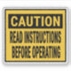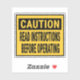Caution Read Instructions Before Operating Sticker