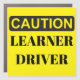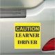 A great custom caution sign with bold yellow on black lettering that warns other drivers the person at the wheel is a learner driver.