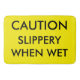 Caution. Slippery when wet sign on a bath mat. Also works as a safety warning sign.
