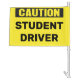 • Bright yellow background with bold black “CAUTION STUDENT DRIVER” text—designed to be seen by other motorists.