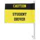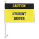 Eye catching black and yellow caution flag. Text reads Caution Student Driver. Use this flag to creates a safer environment for those learning to driving. Parents attach this to your car when your student driver is training behind the wheel. Perfect for letting everyone around you know that a student driver is driving a car or truck. Helps to let other know to give your car space on the road. Perfect for new drivers that have their learning permits. Text can also be changed to fit your own message.