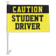 Eye catching black and yellow caution flag. Text reads Caution Student Driver. Use this flag to creates a safer environment for those learning to driving. Parents attach this to your car when your student driver is training behind the wheel. Perfect for letting everyone around you know that a student driver is driving a car or truck. Helps to let other know to give your car space on the road. Perfect for new drivers that have their learning permits. Text can also be changed to fit your own message.