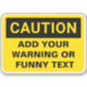 Custom caution sign to warn / inform people or make them laugh with an elegant eye catching design and your own custom title and message.