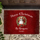 Cute Cavalier King Charles spaniel Christmas door mat with dark red background with the little stars on edges. Easily personalize all the text. Please visit the store for the full line of products that are available :) - Kate Eden Art