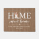 Personalized home sweet home door mat featuring a Cavalier King Charles Spaniel dog, with your family name & year established, set on a brown burlap look background