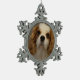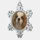A blenheim Cavalier King Charles spaniel adorns this pewter snowflake ornament. Won't this look good hanging on your Christmas tree this year?