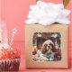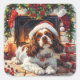 Celebrate the holidays with this charming sticker featuring a Cavalier King Charles Spaniel wearing a Santa hat, sitting by a cozy fireplace. Stockings, holly berries, glowing candles, and a wreath add warmth to the holiday scene. Clean and isolated, this sticker is perfect for adding festive charm to your holiday decor.