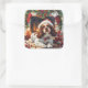 Cavalier King Charles Spaniel by Fireplace Square Sticker