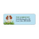 The left side of these return address labels feature an image of an adorable Cavalier King Charles Spaniel puppy dog sitting in a garden of yellow spring daffodil flowers and green foliage. At the right is your custom text in green and black. Everything is placed on a light blue background.