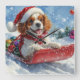 Cavalier King Charles Spaniel Dog Sledge Christmas Square Wall Clock