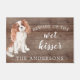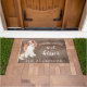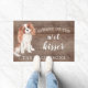 Funny beware of the wet kisser" Cavalier King Charles Spaniel Dog door mat set on a rustic faux background. Visit our shop to view a large assortment of dog breads