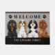 Cute doormat featuring illustration of the Cavalier King Charles Spaniels. Customizable background color and texts. Perfect gift for the dog lover or Cavalier King Charles Spaniel owner.