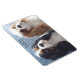 This is an flexible magnet featuring an original photograph of two adorable Cavalier King Charles Spaniel puppies, one tri-color and one blenheim, with the text, "Cavalier King Charles Spaniel". Perfect for your car or refrigerator!