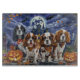 Unleash the spooky spirit with this eerie Halloween design featuring a pack of dogs under a dark, moonlit sky, surrounded by flying bats and glowing pumpkins. Perfect for those who love a touch of frightful fun with their furry friends!