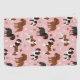 Cute Cavalier King Charles Spaniel with black, brown and white coats with scattered dog bones and pawprints pattern.