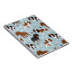 Cute Cavalier King Charles Spaniel with black, brown and white coats with scattered dog bones and pawprints pattern.