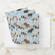 Cute Cavalier King Charles Spaniel with black, brown and white coats with scattered dog bones and pawprints pattern.