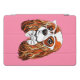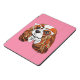 This design features a portrait of a Cavalier King Charles Spaniel wearing glasses and a bow tie on a pink background.