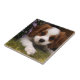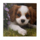 Cavalier King Charles Spaniel Puppy behind flowers Tile