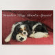 This is a puzzle, featuring an original photograph of the cutest Tricolor Cavalier King Charles Spaniel, resting her head on her favorite toy.