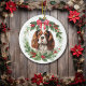 Cavalier King Charles Spaniel Red Bow Holly Wreath Ceramic Ornament