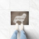 Shabby Chic Cavalier King Charles Spaniel Silhouette Rustic Style Welcome Mat. This cute doormat can be personalized with your family name or slogan. Faux weathered wood design. Makes a fun gift for new home owners, newlyweds, dog dads, dog moms, and anyone who loves their pets like family. Visit Jenn's Doodle World for even more dog breed doormats and Cavie lover’s home decor.