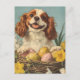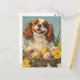 Celebrate Easter with the regal and charming Cavalier King Charles Spaniel in this vintage-style postcard. Featuring the beloved dog surrounded by pastel Easter eggs, blooming spring flowers, and festive holiday accents, this design is perfect for Spaniel lovers, collectors, and fans of nostalgic holiday art. A heartwarming keepsake to spread Easter cheer.