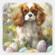 Cavalier King Charles Spaniel with Easter Eggs Square Sticker