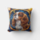 Cavalier King Charles Stained Glass Night Sky Moon Throw Pillow