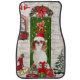 Cavalier King Dog sitting outside decorated home with Christmas wreath, Christmas tree is a perfect Christmas gift idea for dog lovers.