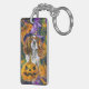 Cavalier King Dog Halloween Witch And Pumpkin Keychain